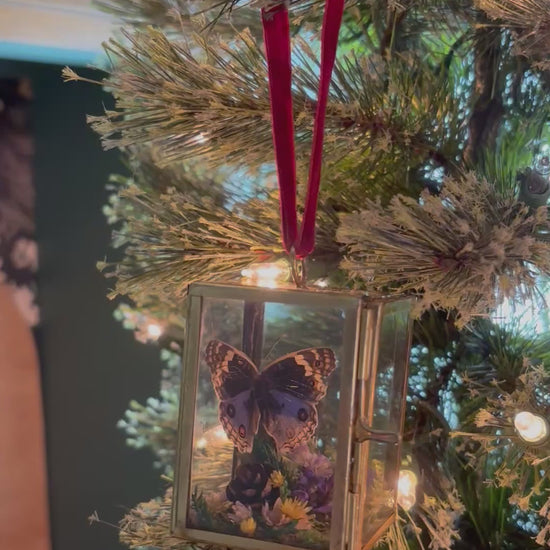 Meet your tree's new favorite friend—a rectangular ornament starring a Blue Pansy Butterfly resting near a little bouquet of dried yellow flowers! This playful piece brings a dash of nature's personality to your holiday décor.